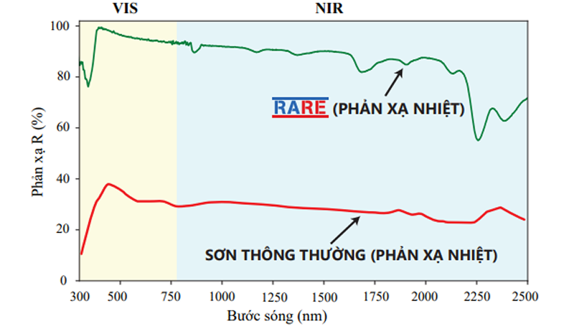 Chỉ số SRI – Solar Reflectance Index (hệ số biểu hiện khả năng phản xạ bức xạ) của Sơn RARE đạt từ 127.7 đến 132.8 tùy điều kiện môi trường (theo kết quả kiểm định của Viện Vật Liệu Xây Dựng – Bộ Xây Dựng)